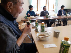 秋の味覚の芋煮を楽しみながら、地域の事や利用者さんのいろはでの生活の様子をお話しして、とても和気あいあいとした会食となりました。